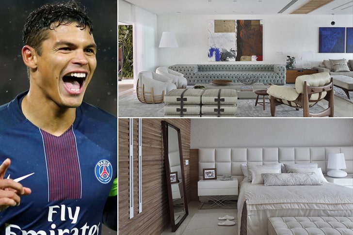 Numa altura em que toda a gente achava que este defesa iria trocar o AC Milan pelo FC Barcelona, o PSG interveio e adquiriu o seu pretendido passe. Hoje, ele é capitão e indiscutível na equipa de Paris. Mas Thiago Silva, que também capitaneia a canarinha, nunca se esqueceu da sua terra-natal, onde comprou uma luxuosa casa de 1 milhão de dólares na cidade do Rio de Janeiro. No interior, a propriedade conta com uma piscina e nos pisos superiores existe uma grande varanda que Thiago usa para saudar os seus fãs, que se reúnem para o ver sempre que sabem que ele se encontra na habitação.