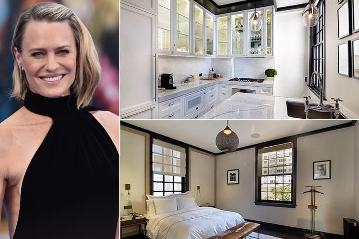 A atriz Robin Wright ficou famosa por seu talento demonstrado em filmes como A Princesa Prometida, Forrest Gump e Santa Barbara. Ao longo de sua carreira, ela acumulou uma boa quantidade de propriedades. Dentre elas, seu lindo apartamento em Manhattan, Nova York, chama a atenção. Ela teria pago $ 2,5 milhões pela residência de dois quartos com uma bela decoração, simples e elegante. Wright continua trabalhando como atriz e deve aparecer no filme Mulher Maravilha 1984, que estréia ainda este ano.