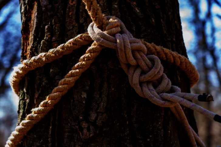 ハナは急いでロープを木に巻きつけ、ギュッと締め、しっかりと結びつけた。