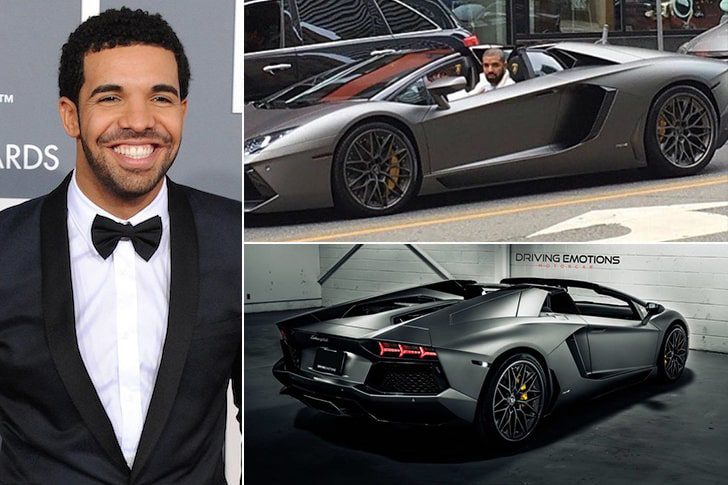 Drake é um rapper canadense amante de carros esportivos e que, para mostrar todo seu amor pela sua coleção de quatro rodas, ele leva algumas de suas máquinas para as gravações dos seus clipes. Alguém que dá tanta importância para seus carros é definitivamente uma pessoa disposta a gastar muito em cada um deles, e uma das máquinas da coleção de Drake é um Lamborghini Aventador Roadster cinza escuro, de 430 mil dólares. O rapper quando comprou o carro até postou uma foto no Instagram dizendo que se sentia como o Batman! Quem não?