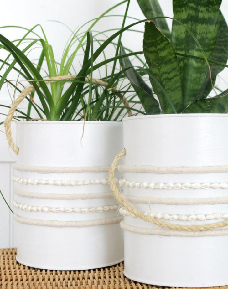 Another thing you can do is paint or decorate the cans to match your style and add a personal touch. Then, fill the cans with soil and plant your favorite houseplants.