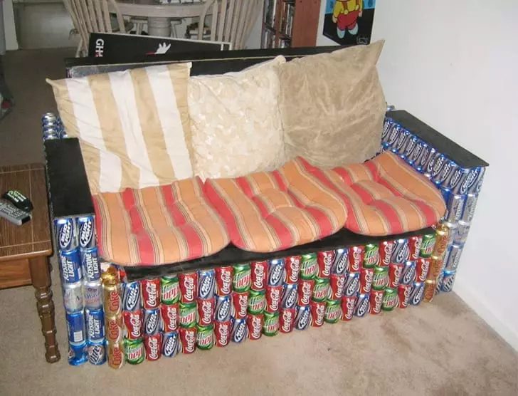 It’s a bit concerning to have a mountain of empty soda cans lying around, but if you do, here’s what to do with them. You’d need to drink a lot of soda cans to make a decent-sized sofa. But once you’ve got them, clean the cans thoroughly.