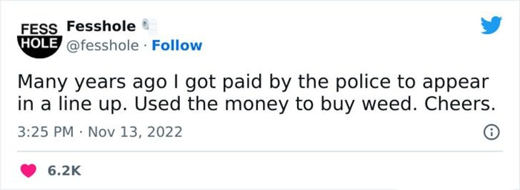Years ago, a young man earned money by appearing in a police lineup. It’s quite funny that he used the money to buy weed. A police lineup involves a group of people presented to a witness to identify a suspect in a crime. Participants are paid to ensure a fair and unbiased process.