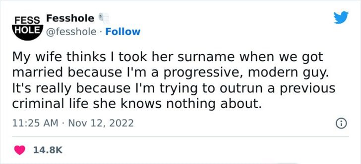 One man revealed the real reason behind taking his wife’s surname when they got married. While she believes it’s due to his progressive, modern values, his true motive is to distance himself from a past criminal life she knows nothing about. Changing one’s surname to escape a troubled past isn’t entirely uncommon.