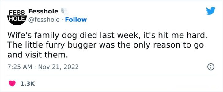 A study found that over 70% of married individuals experience tension with their in-laws, which can stress the relationship. Pets can sometimes bridge this gap, providing a common ground and a source of comfort during family visits. With the dog gone, the man feels the loss keenly, as it removes a key reason for connecting with his wife’s family.