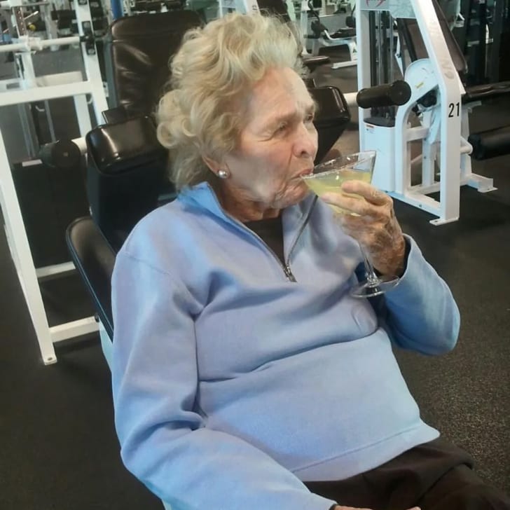 Considering she’s 99-years-old, she looks unbelievably fit! Like a Reddit commentator has put it, this woman might have children who fought in World War II! It’s amazing. And by the way, where on earth did she get that delicious-looking martini? We had no idea they were selling cocktails at the gym!