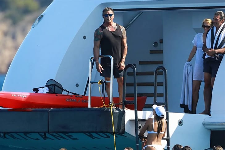Sylvester Stallone ganhou fama mundial por interpretar personagens que se tornaram clássicos do cinema como o soldado pronto para matar, Rambo, e o boxeador Rocky Balboa. O ator escolheu a Riviera Francesa para passar uns dias ao lado da esposa Jennifer Flavin, e três de seus seis filhos. Eles aproveitaram os dias de sol para fazer passeios de barco, e Stallone se arriscou no stand up paddle. Stallone estará no elenco de Esquadrão Suicida 2, que vai ao ar ainda em 2021.
