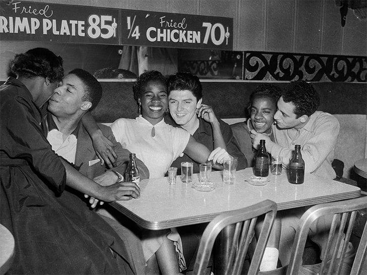 En los Estados Unidos, alrededor de 1959, el movimiento por los derechos civiles estaba en pleno apogeo, enfrentando duras represiones estatales. Esta emotiva imagen, capturada por un fotógrafo afroamericano, nos muestra varias parejas reunidas alrededor de una mesa en un restaurante público, un espacio donde podían sentirse seguros y celebrar su identidad sin miedo.
