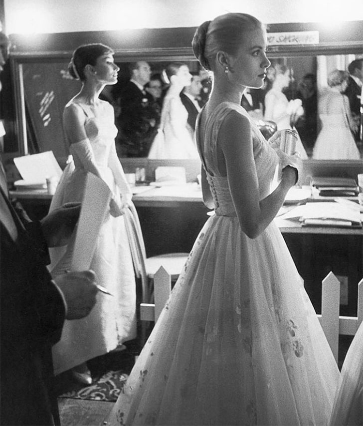 Esta fotografía nos muestra un encuentro peculiar entre dos leyendas de Hollywood: Audrey Hepburn y Grace Kelly, ambas nacidas en el mismo año. A pesar de sus notables carreras, nunca habían compartido pantalla, lo que resulta sorprendente dado su impacto en la industria cinematográfica.