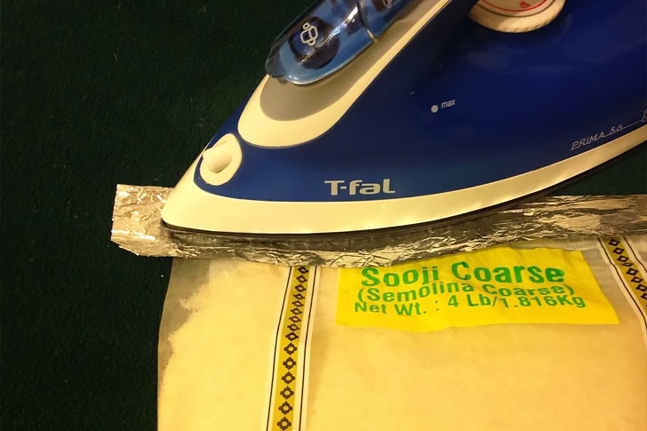 Isto é simplesmente genial. Se você precisar selar um saco plástico, coloque um longo pedaço de papel alumínio na área que deseja prender antes de aplicar um ferro quente. O calor fará o plástico derreter, enquanto o papel alumínio impedirá que ele grude na superfície ou no ferro .
