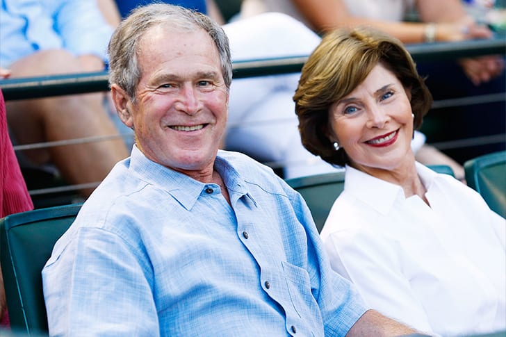 George W. Bush, el 43° presidente de los Estados Unidos, conoció a su esposa Laura Bush en 1977. Ambos se conocieron mientras se encontraban en una reunión en casa de amigos en común. El amor fue a primera vista y la pareja contrajo matrimonio en noviembre de ese mismo año. Tuvieron dos hijas a las que llamaron Barbara y Jenna en honor a sus madres. En 1987 se mudaron a Washington, D.C., mientras George trabajaba para su padre, entonces presidente. Laura se convirtió en Primera Dama de los Estados Unidos en el año 2001.