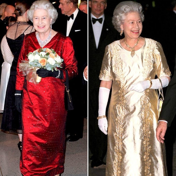 Queen Elizabeth II shined at the 2005 Royal Variety Performance and looked equally elegant at her 1999 golden wedding anniversary. To prevent discomfort, she sometimes had extra linings sewn into her outfits, especially those with heavy embellishments that could irritate her skin.