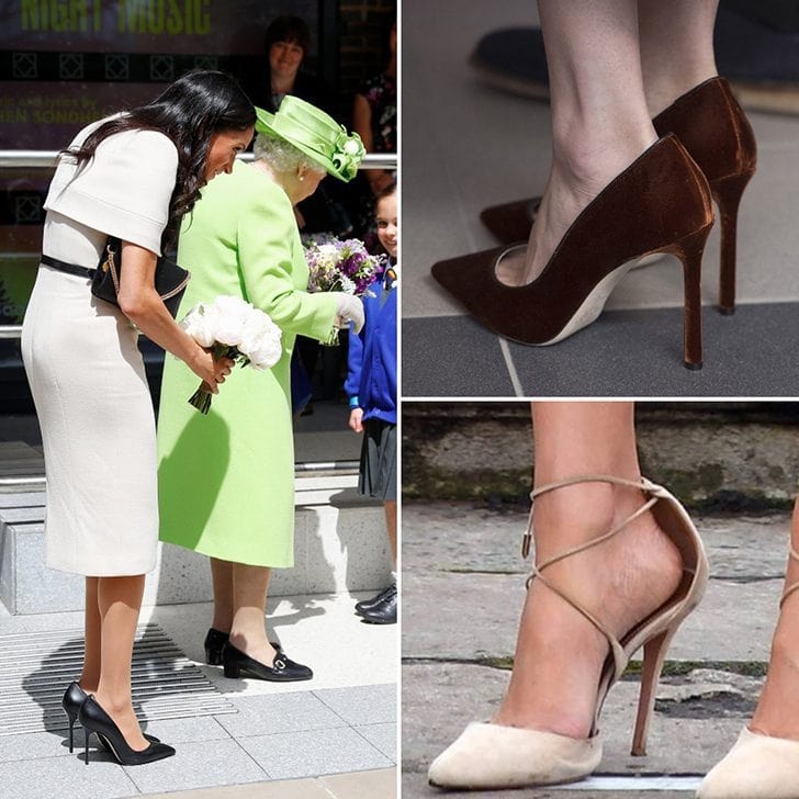 Check out Meghan Markle in pumps that are clearly a size or two larger than her usual fit. She sported these flesh-colored Aquazzura heels to announce her engagement to Prince Harry in 2017. Choosing slightly bigger shoes is a clever trick to avoid blisters, as it prevents feet from rubbing against the interior of the stilettos.