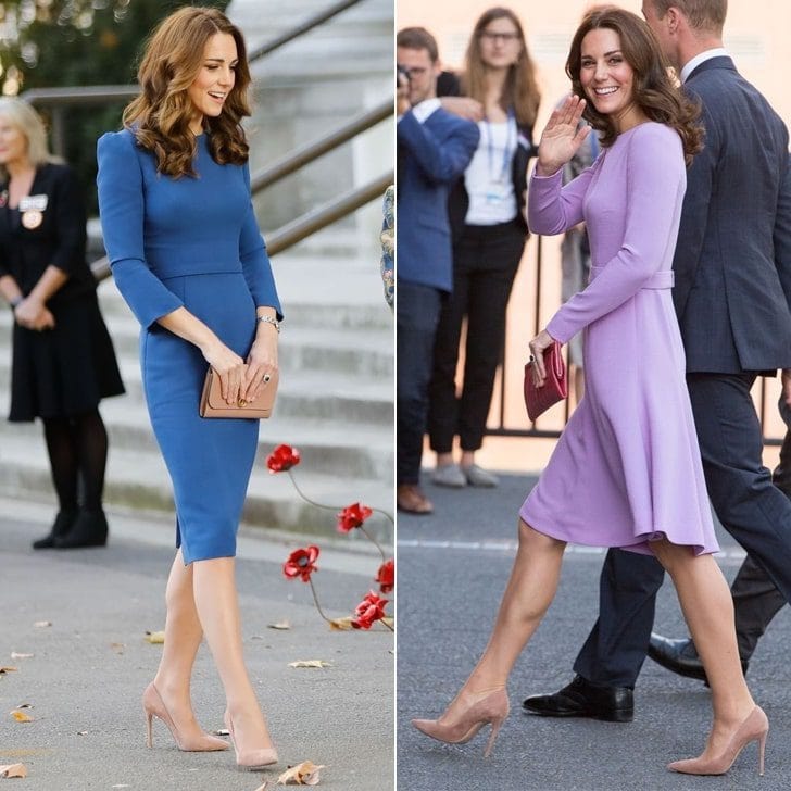 Plus, they make accessorizing a breeze. In these photos, Kate Middleton wears skin-colored shoes on two different occasions, clearly appearing taller. This effective hack enhances her elegant look and is an intelligent choice for anyone looking to add a bit of height.
