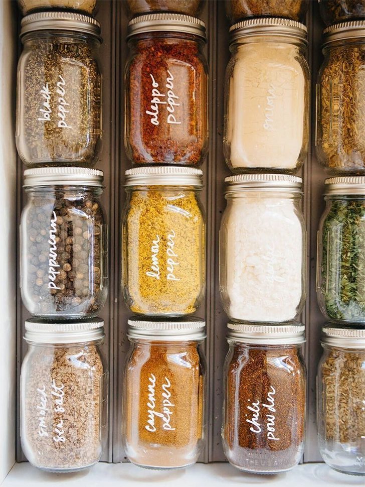 Streamline your cooking with this simple yet practical storage hack: labeling spice jars. Using clear labels on each jar saves time during meal prep and keeps your spices organized and easily accessible.