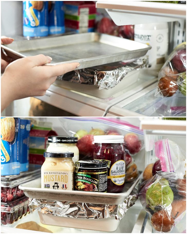 Organizing with trays not only simplifies cleaning but also helps prevent food waste, contamination, and hygiene mishaps. This fridge hack efficiently handles culinary duties and breeze through kitchen clean-up. With everything in its place, you’re set to impress guests without the stress.