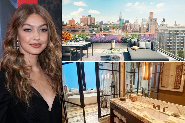Gigi reside en una torre de NoHo, donde posee dos unidades en el edificio. La primera unidad consta de dos dormitorios, una cocina detallada como a Gigi le encanta cocinar y un baño de 2.5 unidades. La segunda unidad es una casa adosada de USD 5.82 millones, que incluye una unidad de 3.5 baños, tres habitaciones y una terraza privada ajardinada con parrilla, fogata y refrigerador al aire libre.