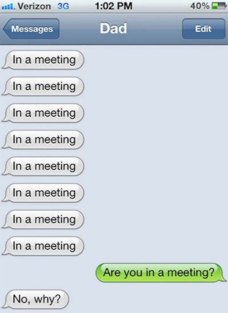 Caught in a technological tangle, a dad sent his child the same automated message eight times: “In a meeting.” When the child finally asked if he was indeed in a meeting, the dad’s puzzled reply came back, “No, why?” This mishap demonstrates the importance of automatic responses for managing communications during busy times.