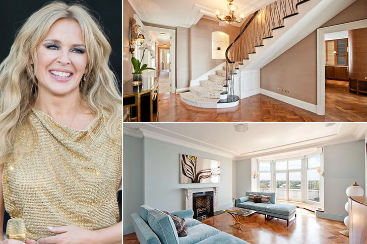 Back in 2010, Kylie Minogue went house-hunting in London and ended up purchasing a two-floor apartment in South Kensington for about $6 million. The 2,730-square-foot apartment has a private elevator entrance, four bedrooms, three bathrooms, and a stunning living space with a fireplace. She hired the Candy & Candy group to remodel it into what it is today. The Loco-Motion singer is quite the busy gal nowadays. After releasing her latest album called Golden in 2018, she went on tour. In 2019, right after finishing her Golden Tour, she started the Summer 2019 Tour in the UK.
