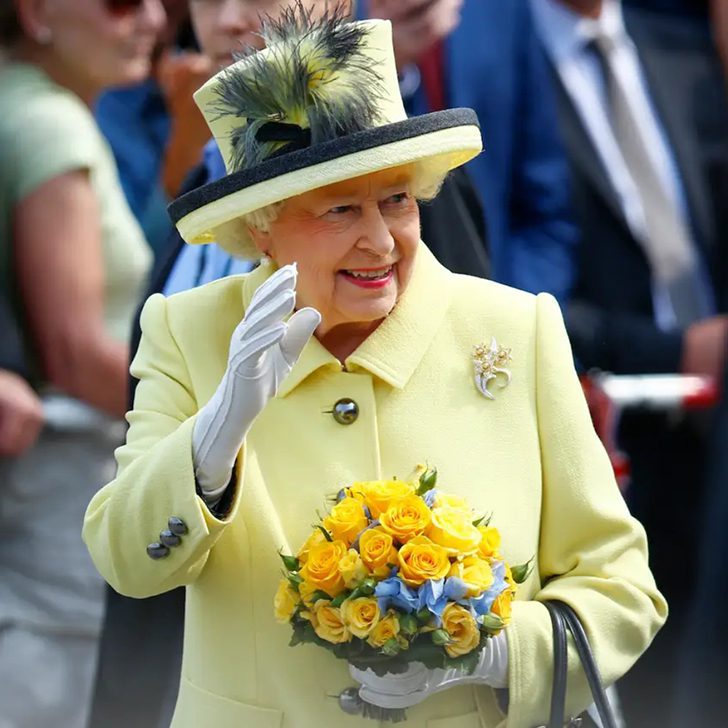 Late Queen Elizabeth II waves to well-wishers at Pariser Platz in Berlin on June 26, 2015, her signature white gloves adding a touch of refinement. These hand coverings were more than a fashion statement; they were practical for hygiene, especially during countless handshakes at royal engagements.