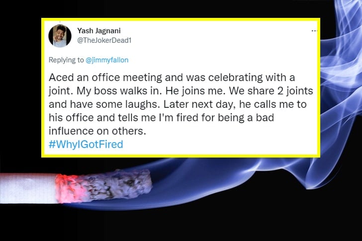 Yash Jagnani nailed an important meeting and decided to celebrate with a joint, only for his boss to walk in and join the impromptu session. Despite sharing laughs and two joints together, Yash found himself jobless the next day, labeled a bad influence.