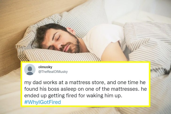 In a twist on the classic “don’t wake a sleeping giant,” one employee at a mattress store discovered his boss dozing on the job—literally. When he roused the napping superior, he found himself out of a job!