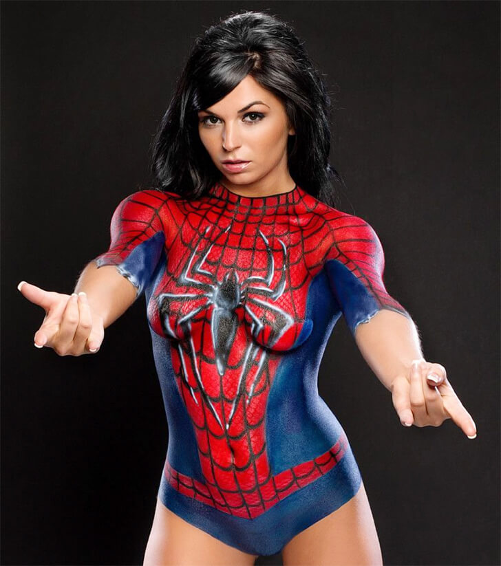 Credit goes to Shane Nafziger for turning body art into superhero couture. The airbrushed muscle tone, the clean web lines, the dramatic pose—it’s all straight out of a Marvel daydream, minus the radioactive spider. If there were auditions for an alternate universe Spider-Verse, this version’s already got fan-favorite status.