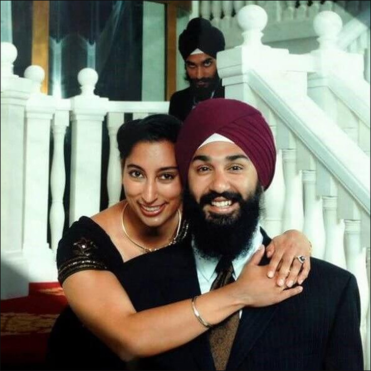 But wait, the photo takes a hilarious turn with an unexpected guest in the background! Wearing a black turban and a deep frown, this photobomber steals some of the spotlight. His grumpy expression contrasts perfectly with the couple’s blissful smiles, creating a photo that’s heartwarming and hysterical. Turban or not, this guy’s mood is anything but festive!