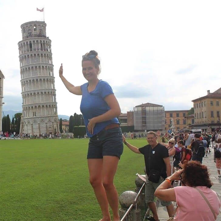 This playful twist on the classic Pisa photo-op brings a new level of fun to the iconic spot. The Leaning Tower, a marvel of medieval architecture, continues to attract visitors who can’t resist the urge to create hilarious photo illusions like this one. It’s a perfect blend of history and humor!