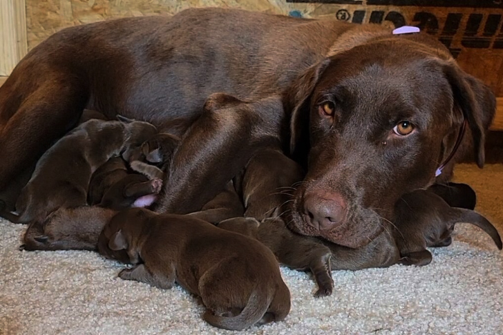 Lola had played a part in bringing her pup back. She curled up protectively around her litter as though nothing had ever been wrong. The relief was palpable, but Dr. Greene’s instincts told him the battle wasn’t over. With twelve puppies and one near-loss, something about this litter felt different. Something told him this wasn’t the end of their ordeal.