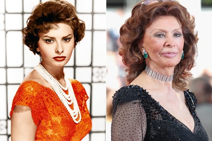 Sophia Loren é uma das atrizes mais belas da história do cinema sendo a protagonista de diversos filmes. Em 1999, o American Film Institute inclui Sophia entre as 25 maiores mulheres do cinema. Com tanta beleza, foi muito difícil para ela envelhecer e lidar com a pressão que essa indústria coloca sobre a aparência das atrizes. Por isso, ela já admitiu ter passado por diversas intervenções cirúrgicas, inclusive uma no nariz quando era mais jovem. Hoje, com 84 anos, Sophia está quase irreconhecível em sua cadeira de rodas.