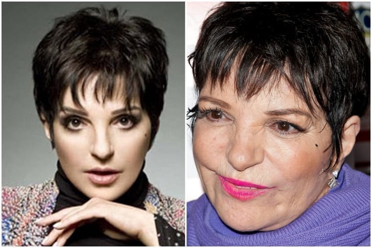 Liza Minnelli nasceu rodeada de glamour e fama. Sua mãe, de quem era bem próxima, Judi Garland, já era uma atriz de sucesso. Liza estrelou muitos sucessos, entre os quais, Cabaret. Aos 23 anos já tinha sido indicada ao Oscar por sua atuação em The Sterile Cuckoo. Ela não aguentou a morte da mãe e acabou tendo um colapso nervoso. Daí em diante, a artista teria ficado viciada em drogas (e dizem os fofoqueiros de plantão, também em casamentos). Há boatos que Lisa teria feito muitos procedimentos estéticos, mas não dá para saber se é verdade. O importante é que fique sóbria.
